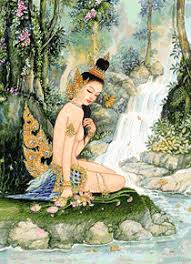 จันทกินนรา จากนิทานชาดก เรื่องจันทกินรี มีรูปกายเป็นคน แต่มีปีก